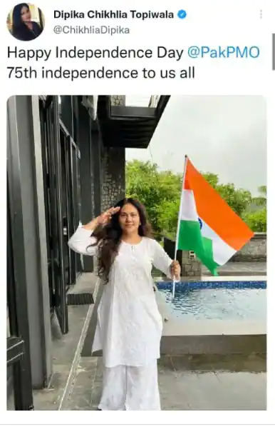 Dipika Chikhalia’s tweet on Independence Day 2022 tagging PAK PMO is now yet to be deleted. But it’s too late. The screenshots of the tweet have gone viral on social media with netizens laughing at them. One of the netizens wrote that there would have been a big drama if Deepika Padukone had made this mistake. Another netizen shared an angry photo of Laxman from the show Ramayana. One user joked, “Hey prabhu, kahaan hai monkey? Ab toh avtaar lena hi hoga.” Also Read – Independence Day 2022: Salman Khan asks everyone to ‘Get ready for Tiger 3’ as he celebrates 10 years of his successful franchise [Watch Video]